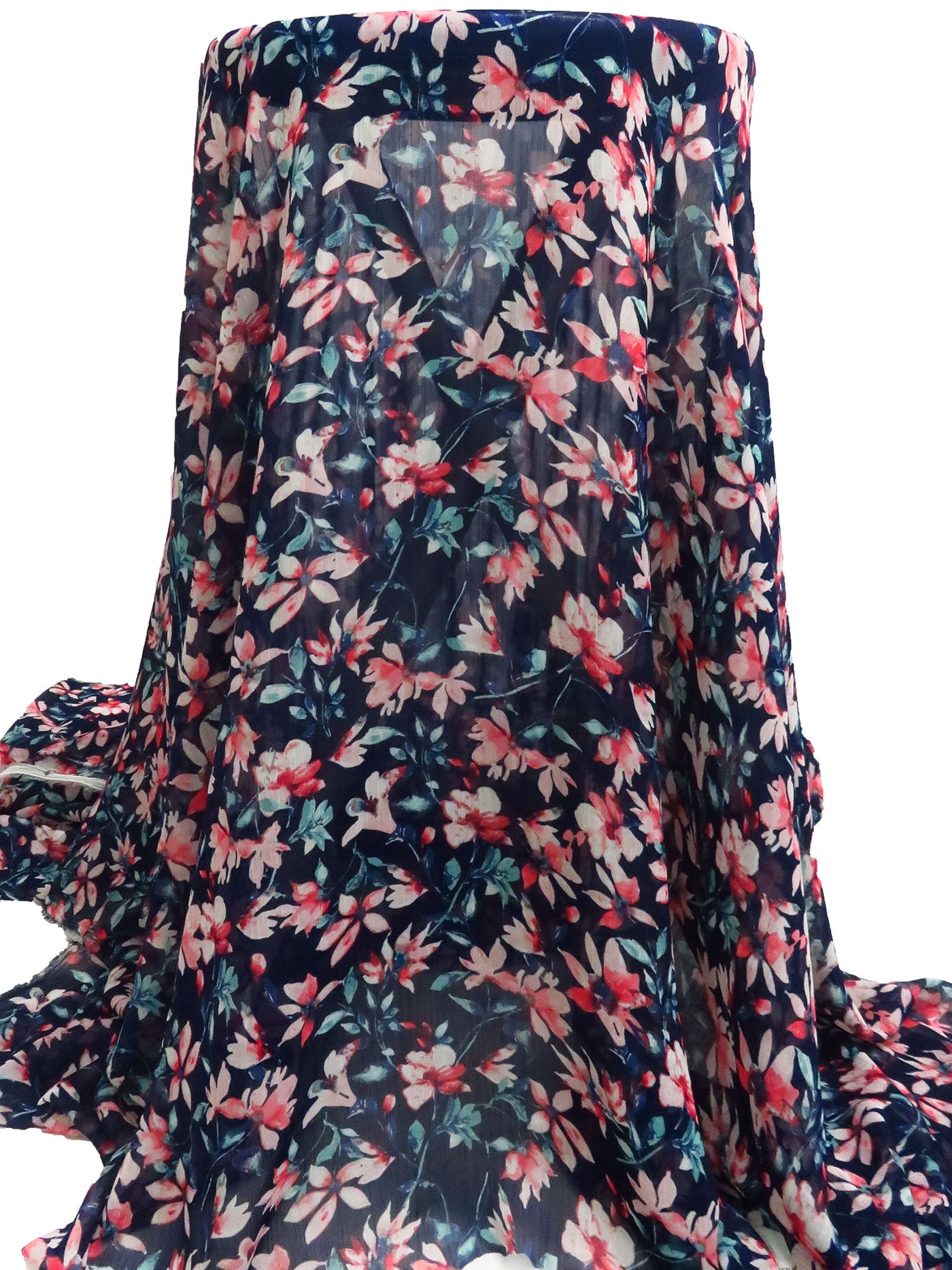 Midnight Navy/Soft Pink/Aqua/Multi 100% Polyester Floral Print Crinkle Chiffon 59W