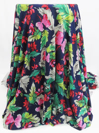 Navy Blue/Fire Engine Red/Lime/Multi Rayon/Lycra Tropical Floral Print Jersey Knit 56W
