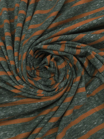 Evergreen Gray/Gingerbread Cotton/Polyester Heathered Horizontal Stripe Weave Tissue Jersey Knit - NY Designer - 62W