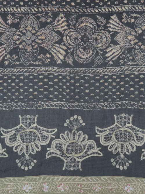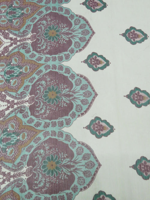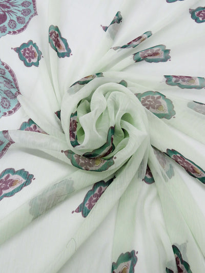 Mint/Plum/Deep Jade/Multi 100% Silk Single Border Floral Medallion Print Crinkle Chiffon 57W