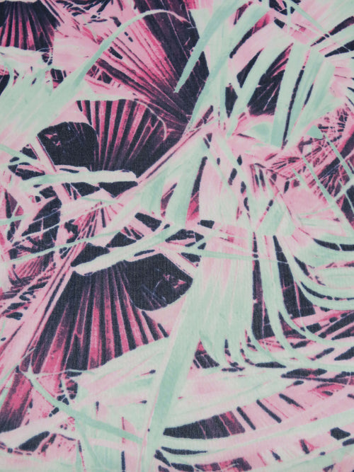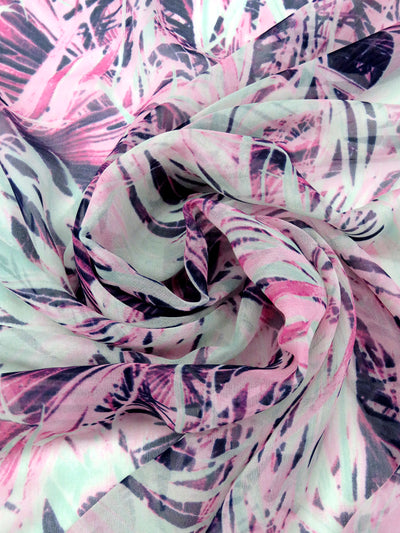 Paradise Pink/Mint/Royal Purple/Multi 100% Silk Abstract Overlapping Frond Print Crepe Chiffon 55W