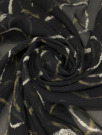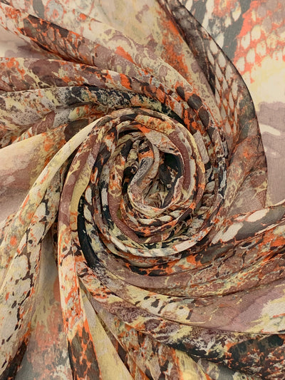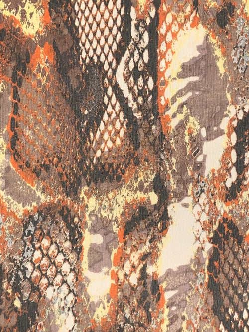 Cobblestone/Black/Medium Vermilion/Multi 100% Silk Abstract Snakeskin-Look Print Crinkle Chiffon 52W