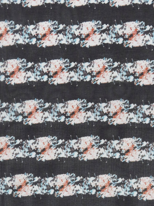 Black/Olive/Pale Stone/Multi 100% Silk Horizontal Multi Stripe Print Crepe Chiffon 53W