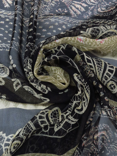 Black/Light Mauve/Currant Red/Multi 100% Silk Ornate Double Border Glitter Print Crinkle Chiffon 53W