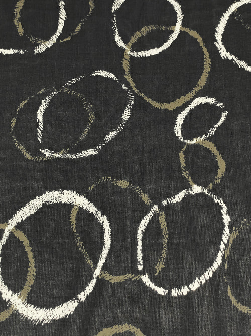 Black/Raw Umber/Off-White 100% Silk Irregular Circles Print Chiffon 53W