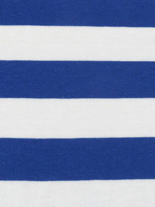 Azure Blue/White Cotton/Polyester Horizontal Stripe Jersey Knit 56W