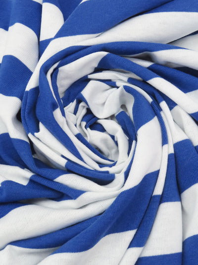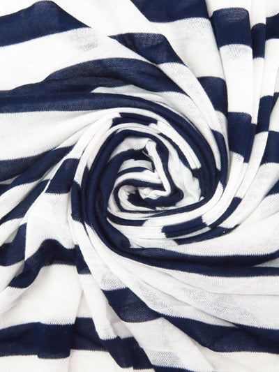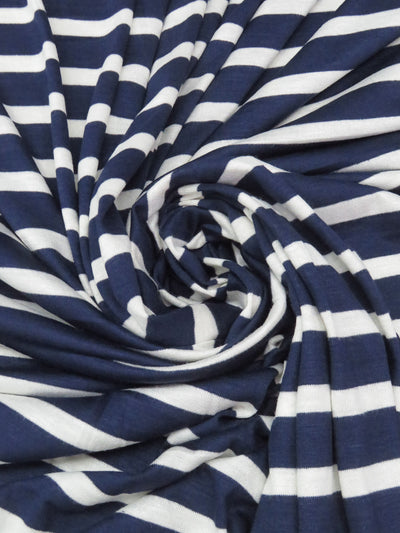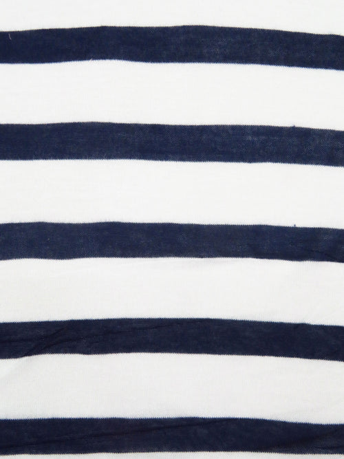 Navy/White Rayon/Lycra Horizontal Stripe Jersey Knit 59W