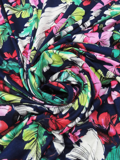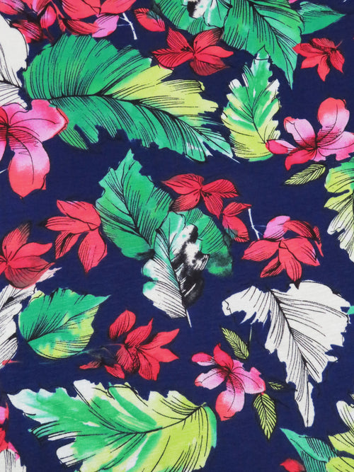 Navy Blue/Fire Engine Red/Lime/Multi Rayon/Lycra Tropical Floral Print Jersey Knit 56W