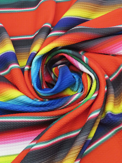 Fire Red/Sapphire/Forest Green/Multi Polyester/Lycra Horizontal Gradient Fiesta Stripe Print Liverpool Double Knit 59W