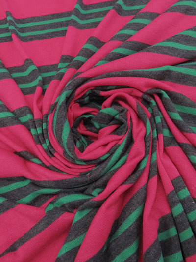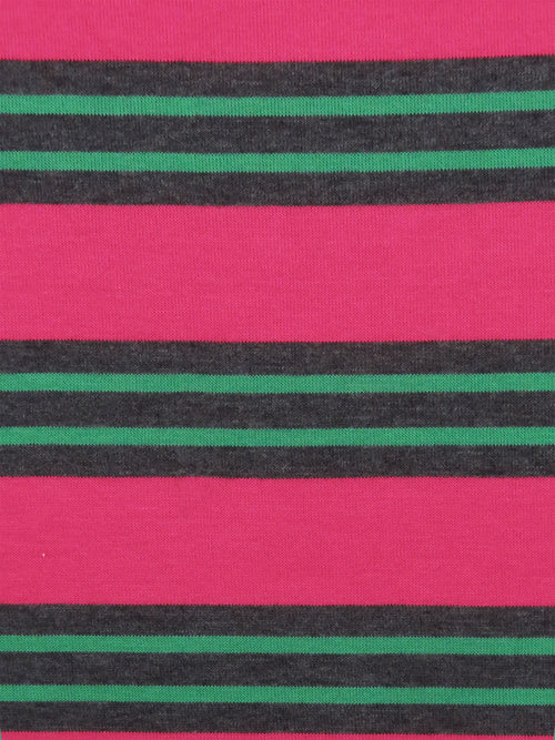 French Raspberry Pink/Evergreen/Charcoal Gray Polyester/Lycra Horizontal Stripe Sweater Knit 50W
