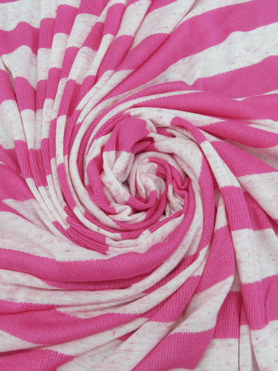 Paradise Pink/White 100% Polyester Horizontal Ribbed Stripe Tissue Jersey Knit 56W