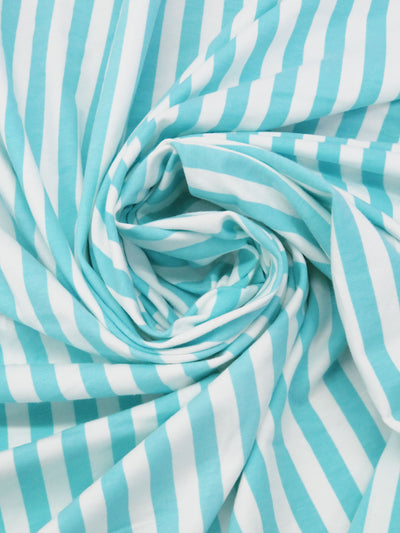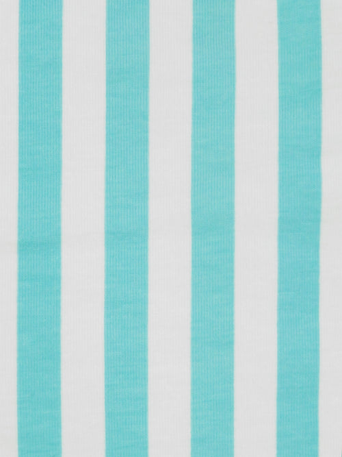Robin Egg Blue/White Cotton/Lycra Vertical Stripe Print Jersey Knit 60W