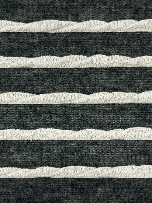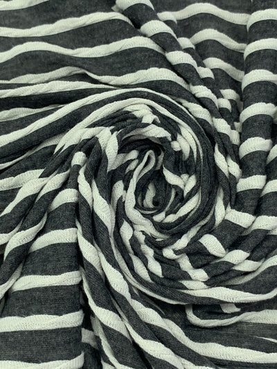 Heathered Dark Charcoal/Off-White Polyester/Rayon/Lycra Horizontal Small Ruffle Tissue Jersey Knit 56W