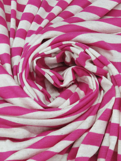 French Raspberry/Chalk White Polyester/Lycra Horizontal Stripe Weave Jersey Knit 54W