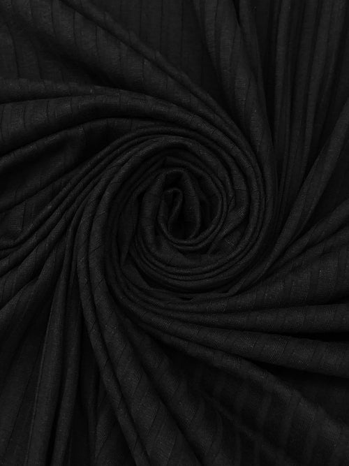 Black Polyester/Rayon/Lycra Wide Rib Knit - NY Designer - 50W