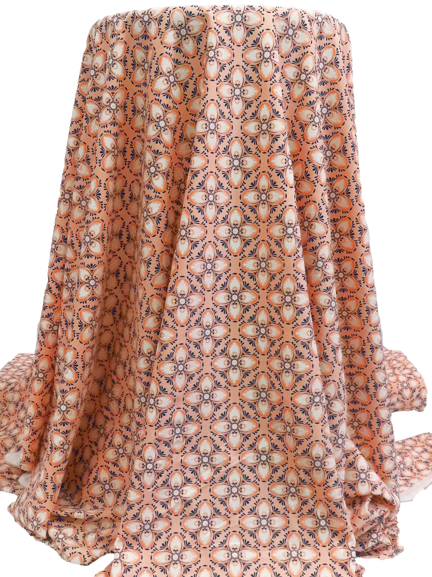 Apricot/Midnight Navy/White/Multi Nylon/Lycra Medallion Print Swim/Activewear Knit 58W