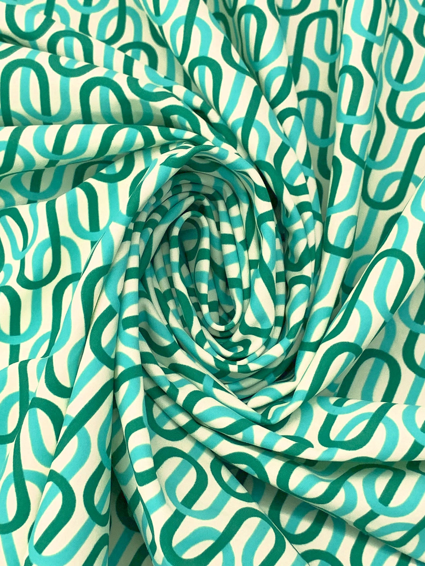 Medium Turquoise/Dark Sea Green/Off-White Nylon/Lycra Interlocking Waves Print Swim/Activewear Knit 58W
