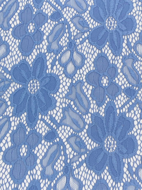 Cornflower Blue Nylon/Lycra Re-Embroidered Floral Stretch Lace - NY Designer - 56W