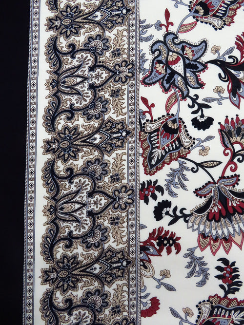 Soft White/Midnight Navy/Sappenwood/Multi 100% Rayon Single Border Folk Floral Print Challis 42W