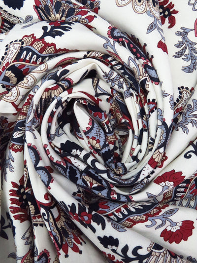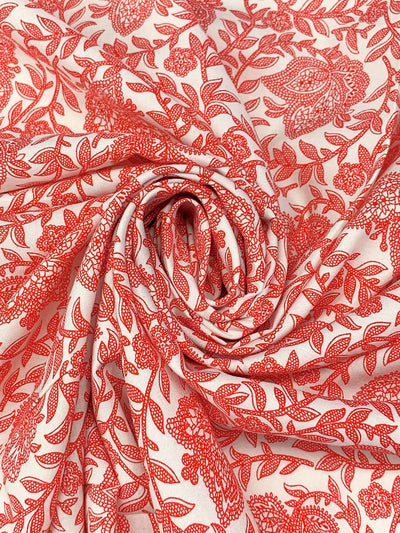 Eggshell/Volcano Red 100% Rayon Stylized Floral Print Challis 43W