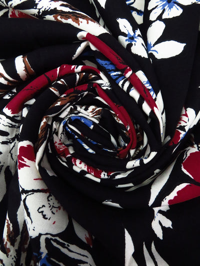 Black/Off-White/Dark Crimson/Dark Cornflower 100% Rayon Tropical Floral Print Challis 44W