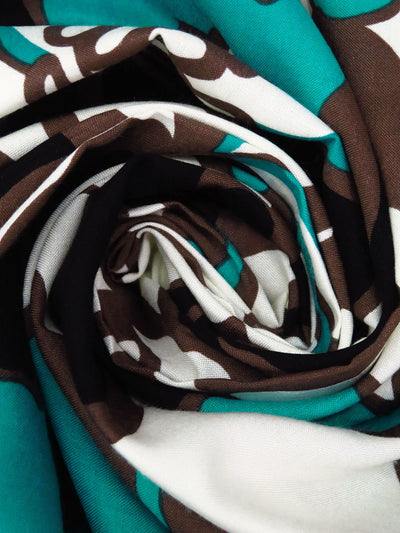 Off-White/Vivid Teal/Bistre/Black 100% Rayon Large Abstract Floral Print Challis 44W