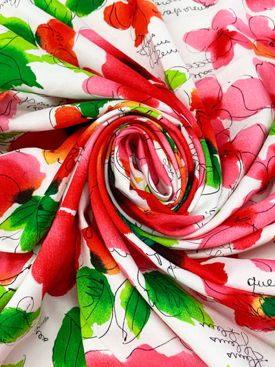 White/French Pink/Lime/Black 100% Rayon Painterly Floral Print Challis 43W