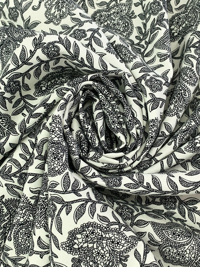 Black/Off-White 100% Rayon Paisley & Vine Print Challis 44W