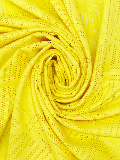 Bright Lemon Nylon/Lycra Geometric Lace Knit - Famous Dress Designer - 50W