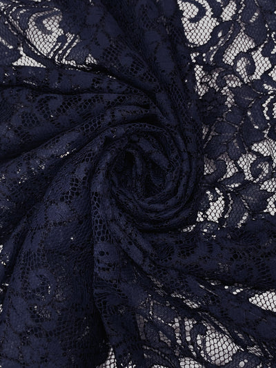 Navy Blue 100% Polyester Floral Weave Lace Netting 56W