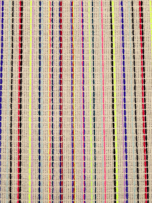 Beige/Neon Pink/Dark Blue/Multi Cotton/Polyester/Wool Vertical Stripe Woven Suiting - NY Designer - 45W
