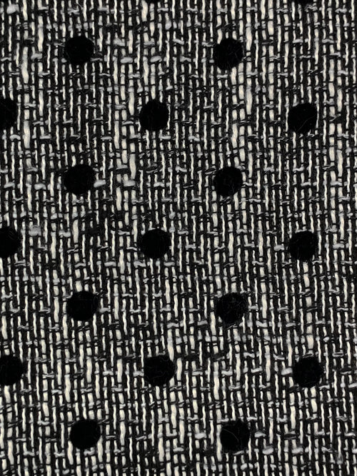 Black/White 100% Polyester Polka Dot Print On Boucle Suiting - NY Designer - 56W