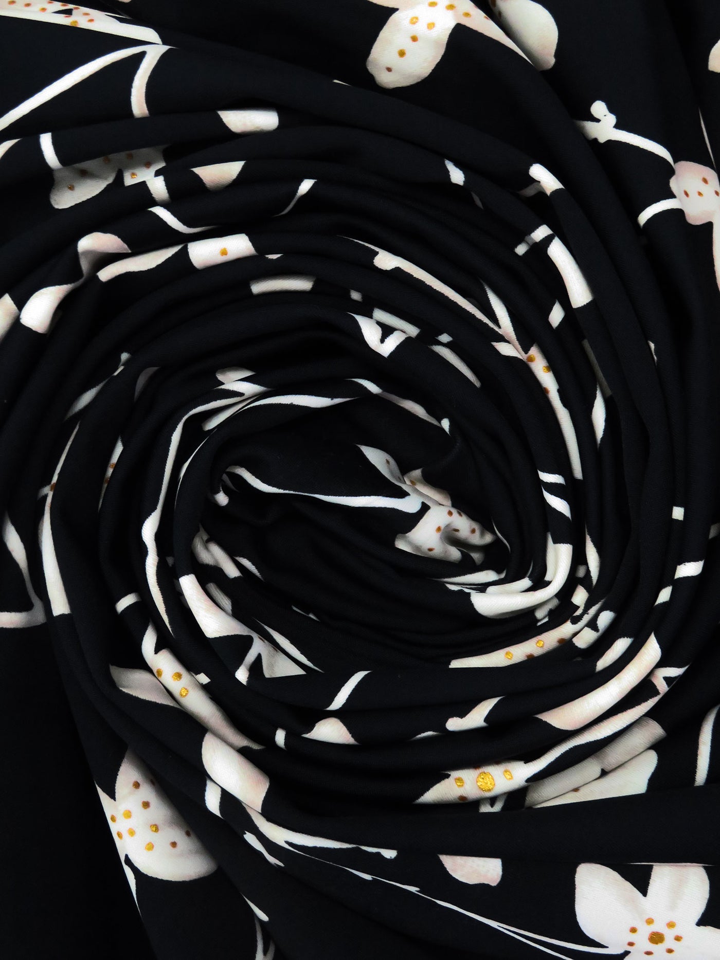 Black/Sand/Tan/Gold Nylon/Lycra Floral Branches Print Swimwear Knit 57W