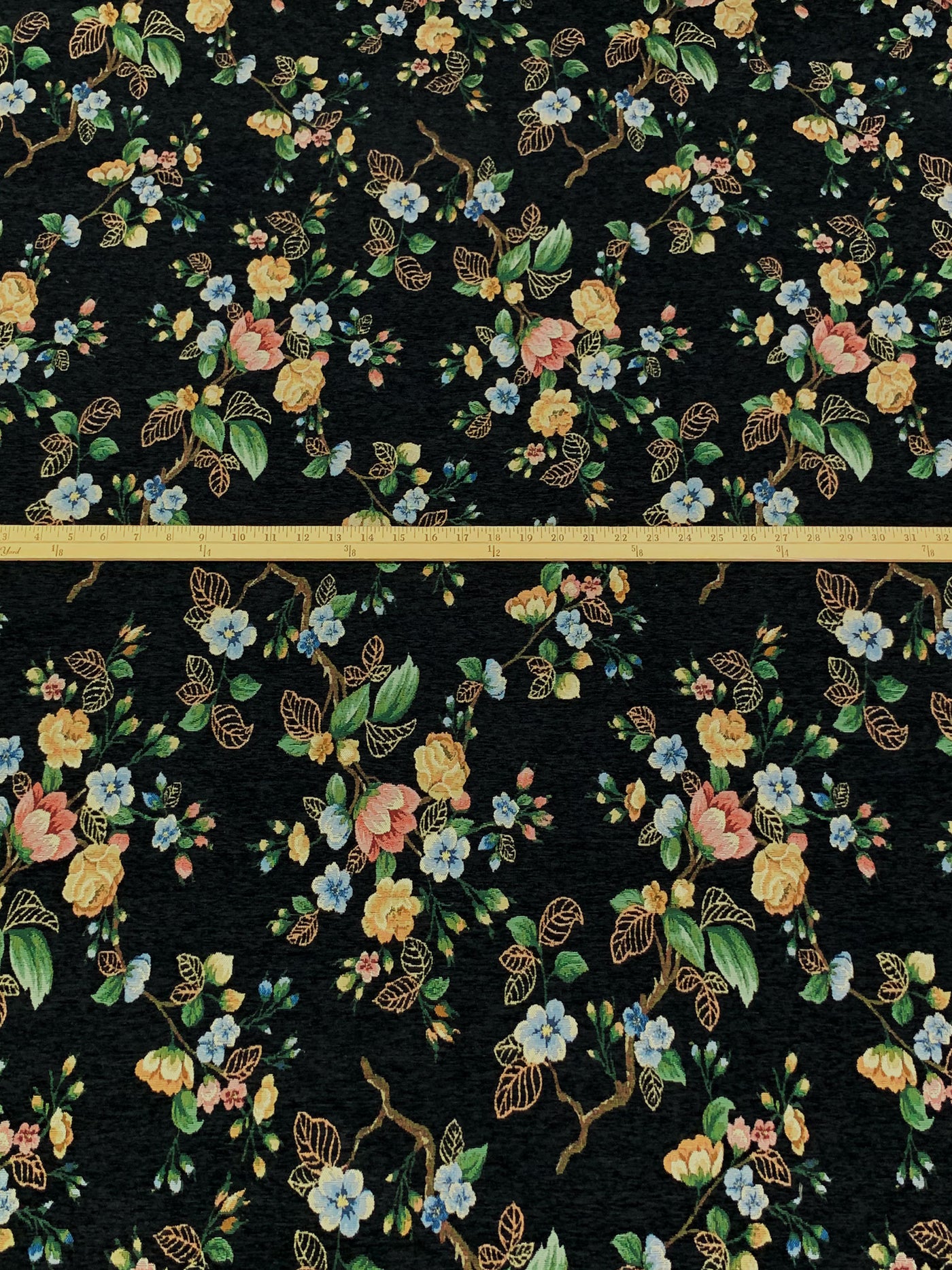 Black/Soft Blue/Dark Spring Green/Multi 100% Polyester Floral Tapestry Brocade - NY Designer - 58W