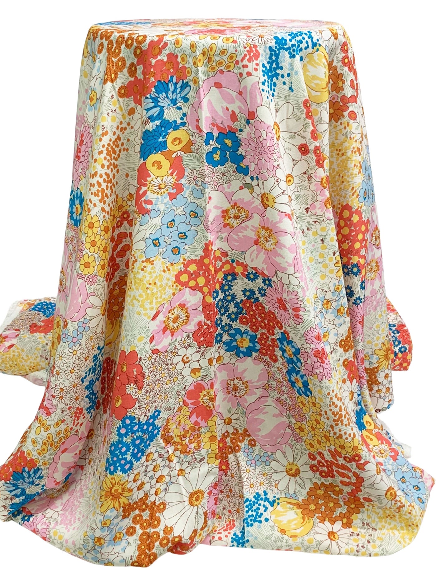 Cyan Cornflower Blue/Dark Coral/Straw/Multi 100% Rayon Floral Print Challis 57W