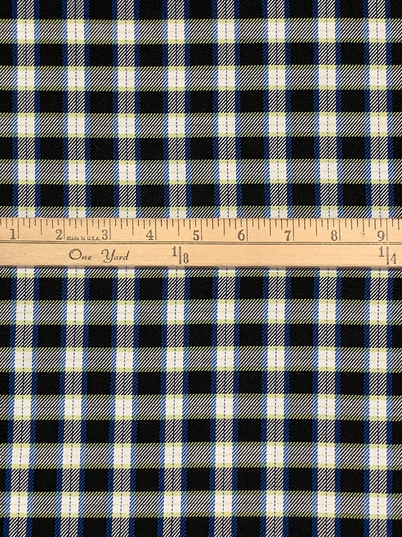 Dark Cerulean/Straw/Black/White Polyester/Rayon Yarn-Dyed Plaid Weave Suiting 58W