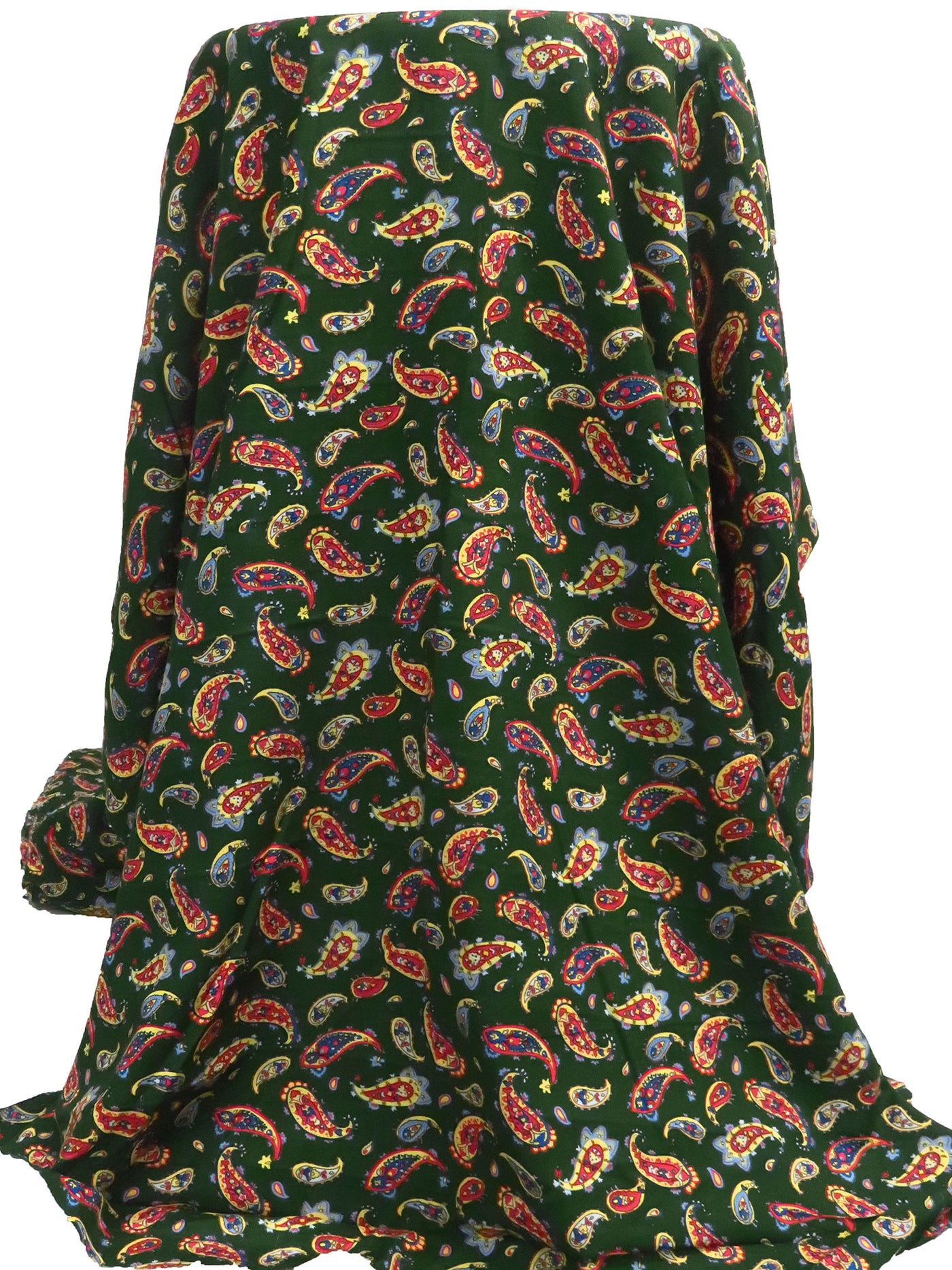 Deep Forest Green/Cornflower/Corn/Multi 100% Rayon Paisley Print Challis 44W