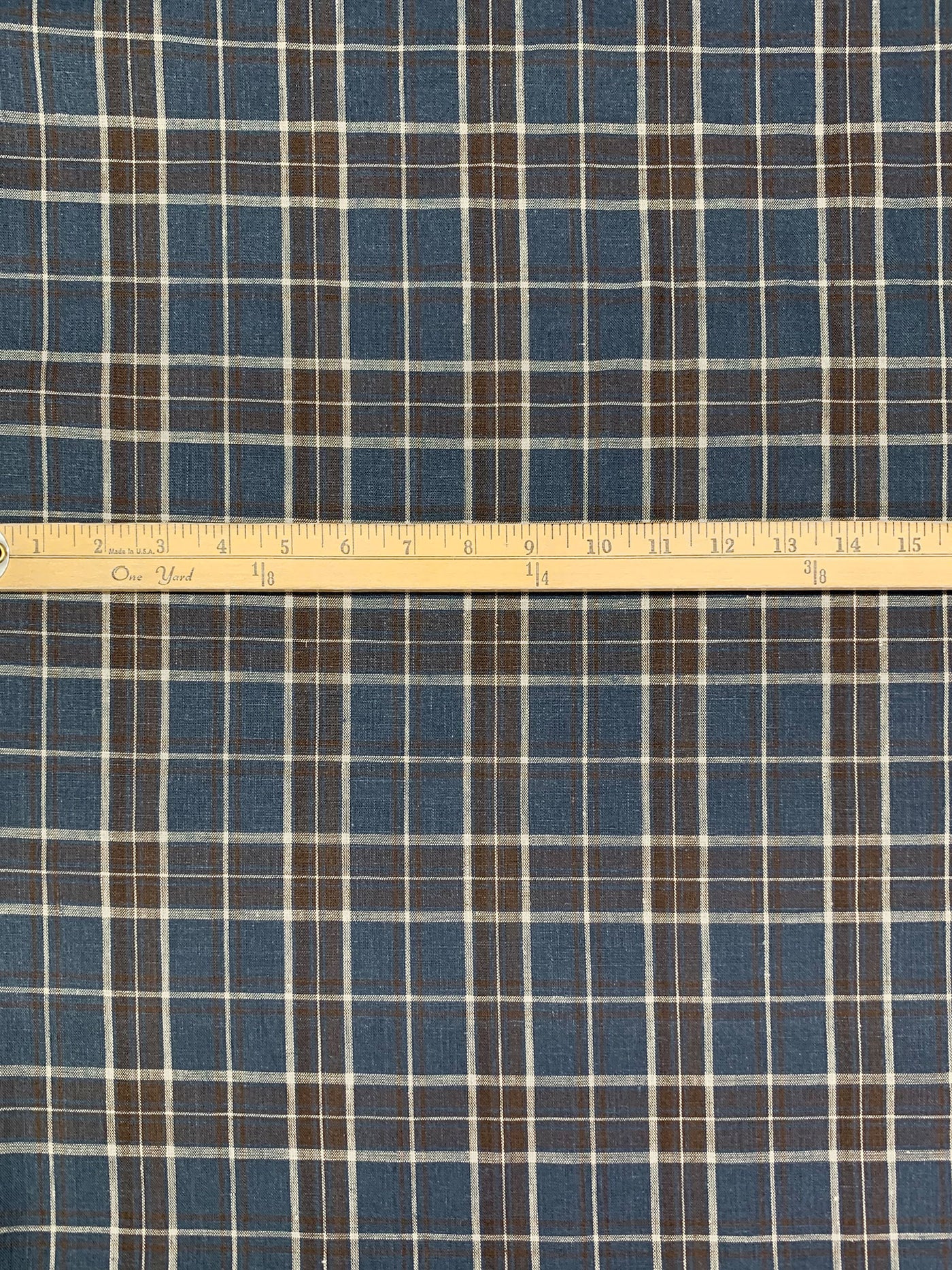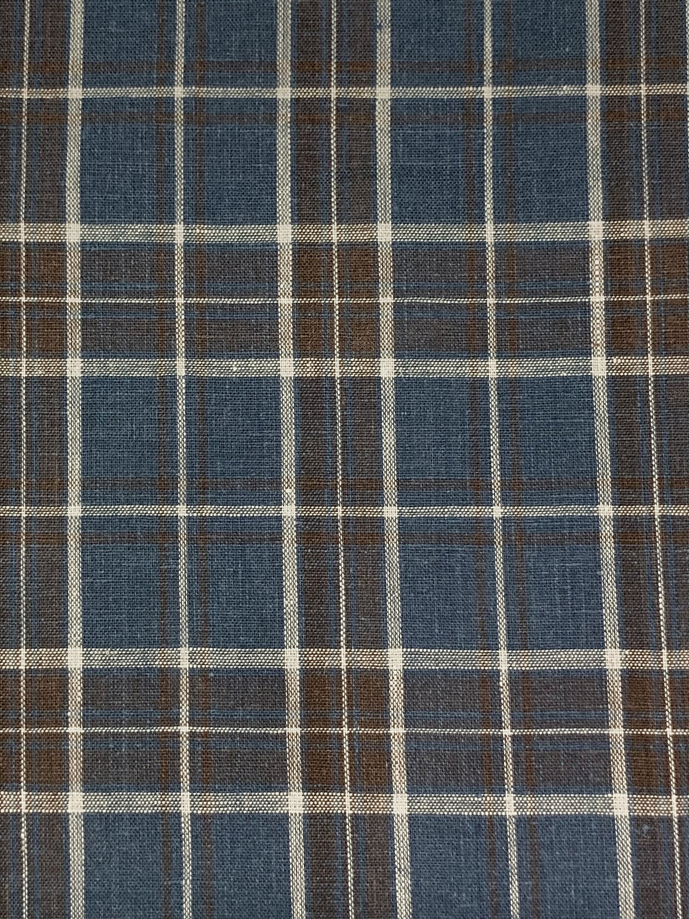 Independence Blue/Royal Brown/Off-White 100% Linen Yarn-Dyed Plaid Shirt Weight Woven - European Mill - 58W