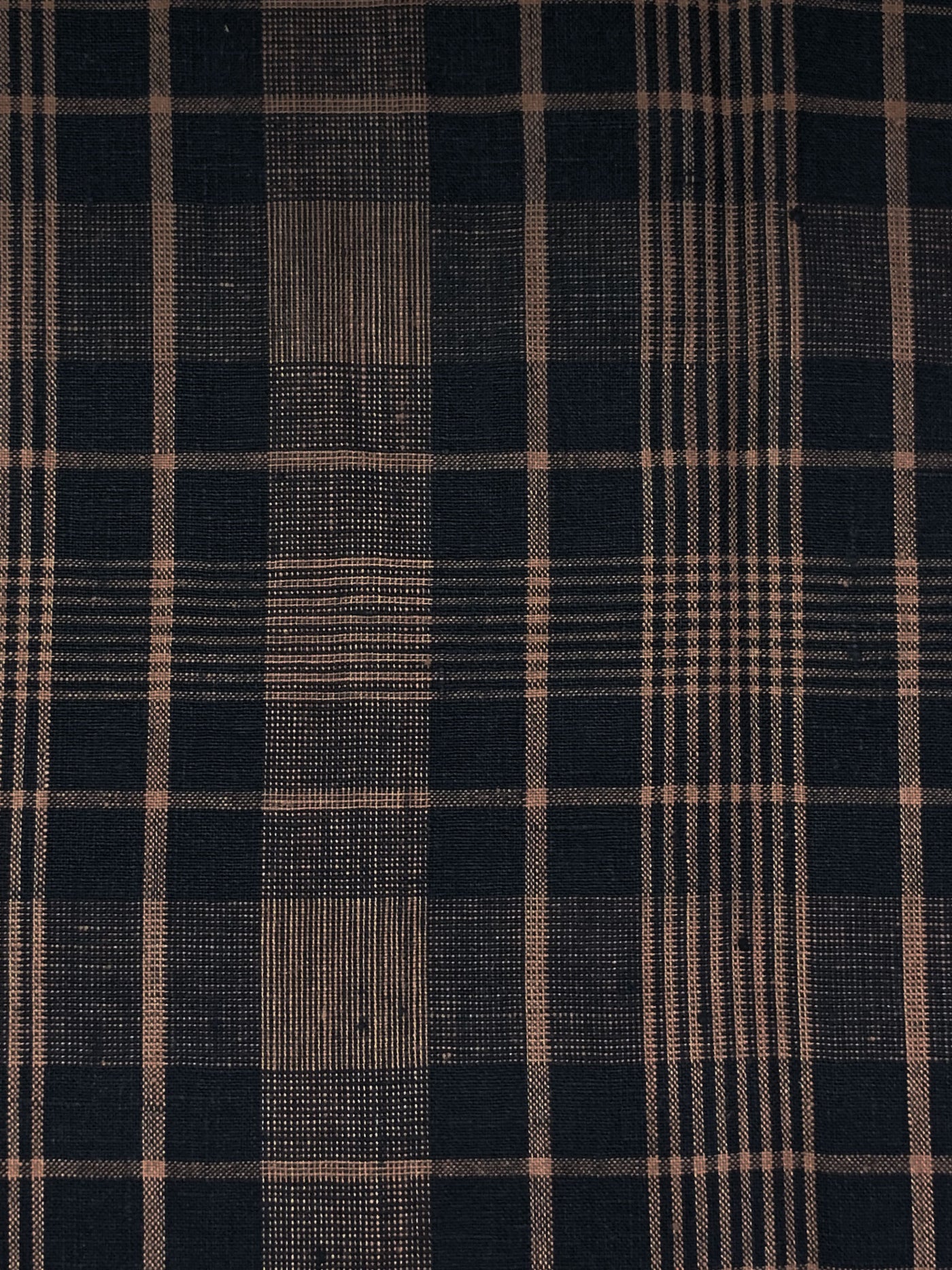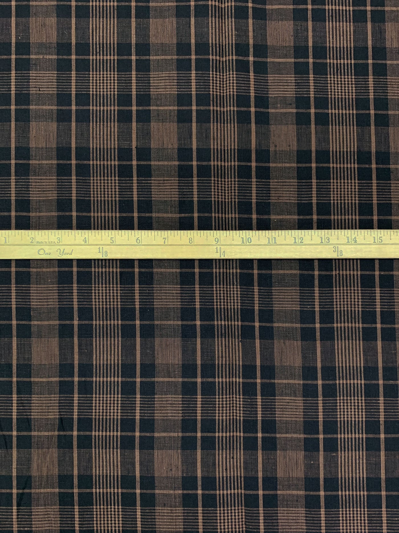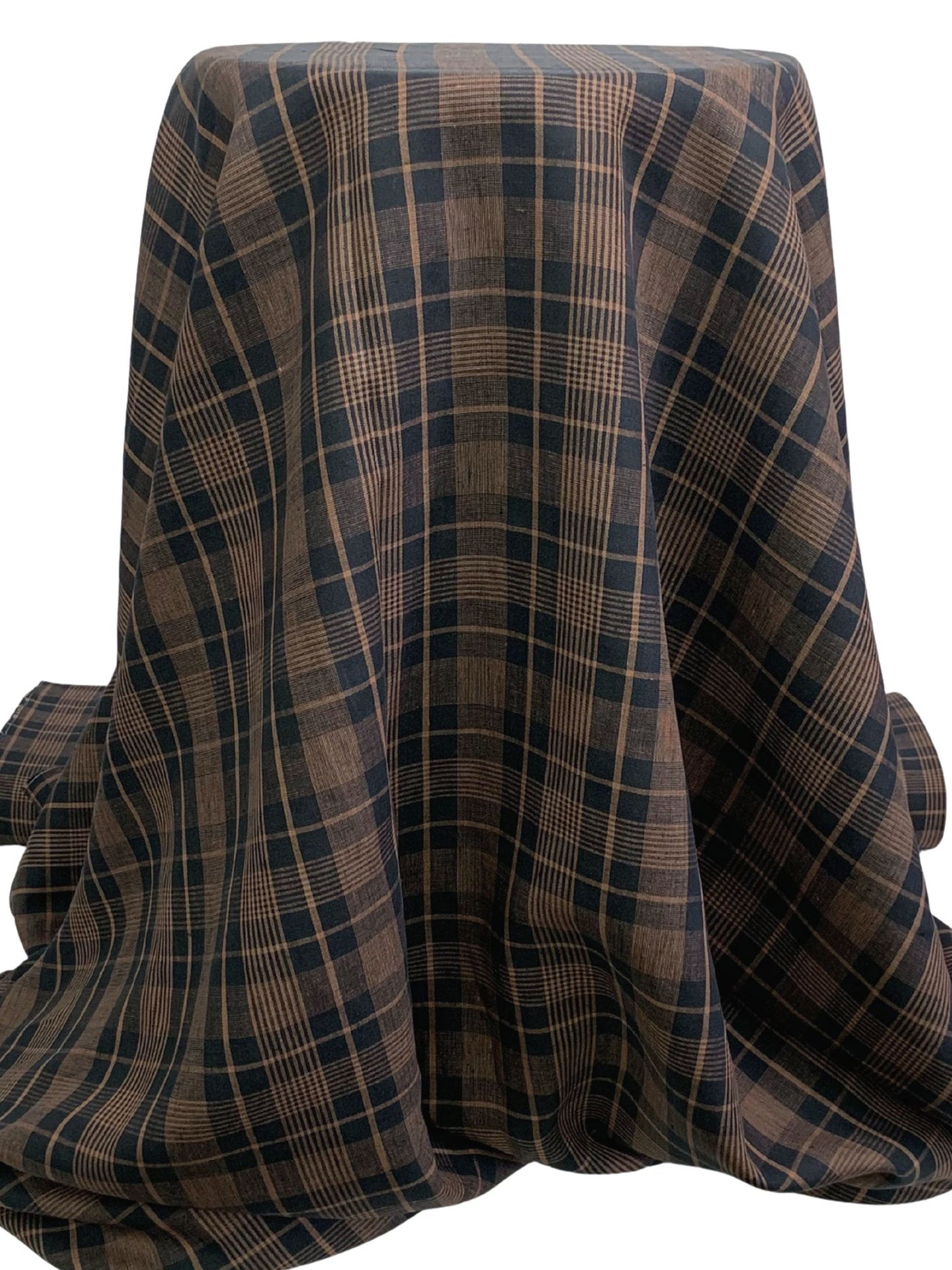 Muted Midnight Navy/Pale Brown 100% Linen Yarn-Dyed Plaid Shirt Weight Woven 58W