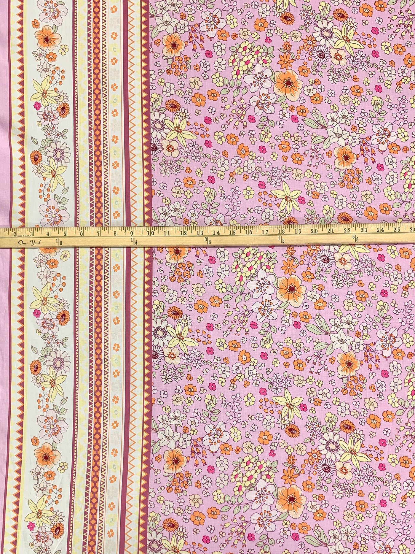 Orchid Pink/Royal Orange/Multi 100% Rayon Double Border Floral Print Challis 56W