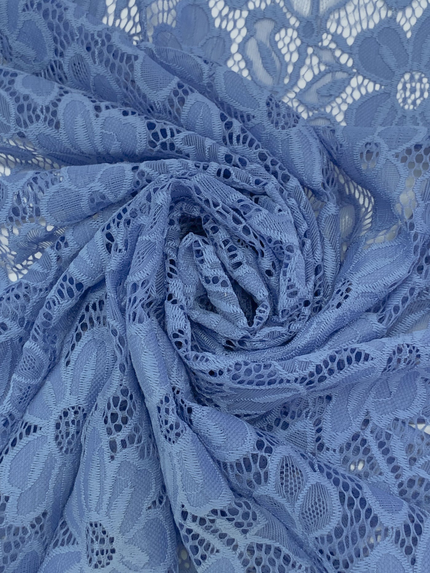 Silver Lake Blue Nylon/Lycra Re-Embroidered Floral Stretch Lace - NY Designer - 56W