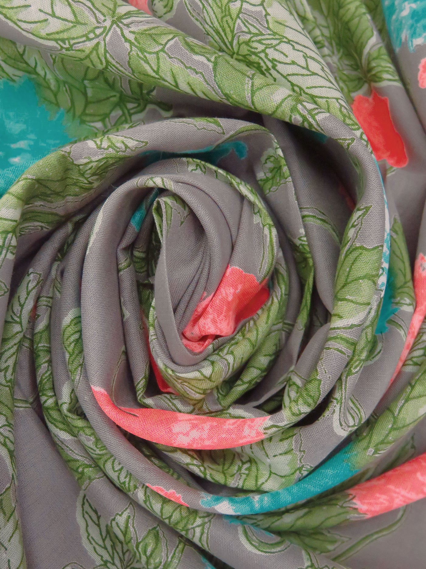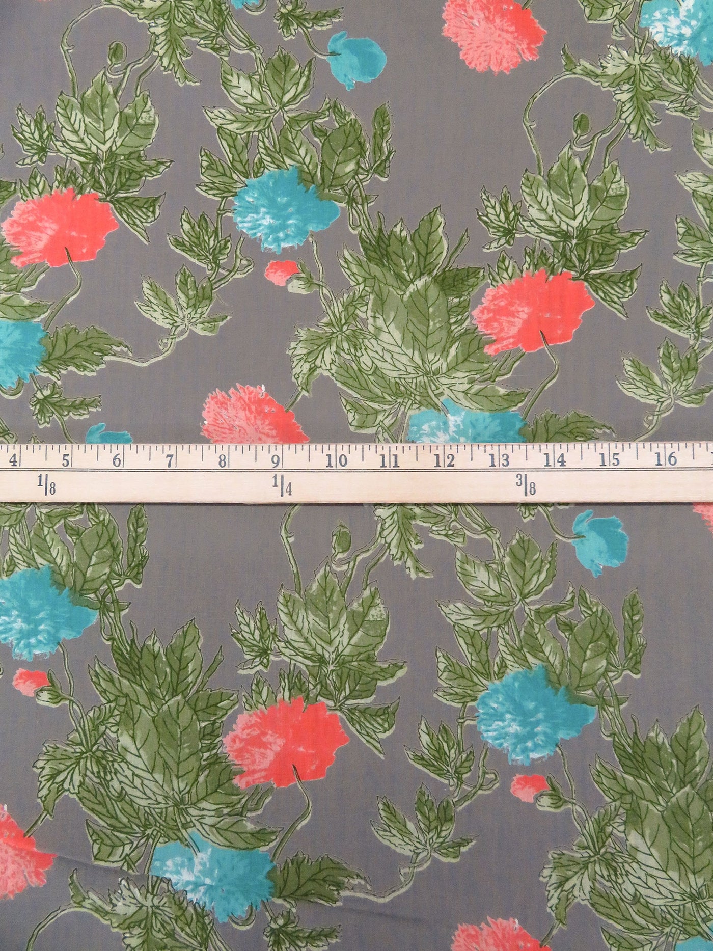Taupe Gray/Fern/Coral Red/Multi 100% Cotton Floral Voile 42W
