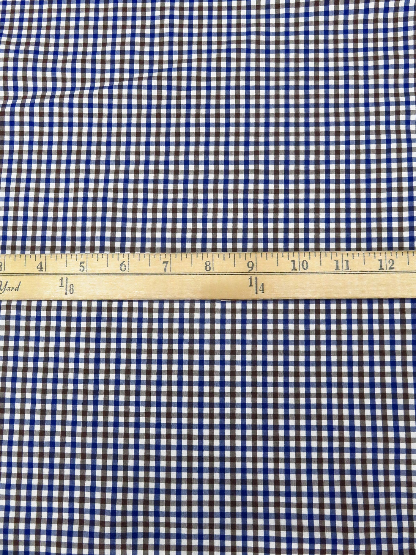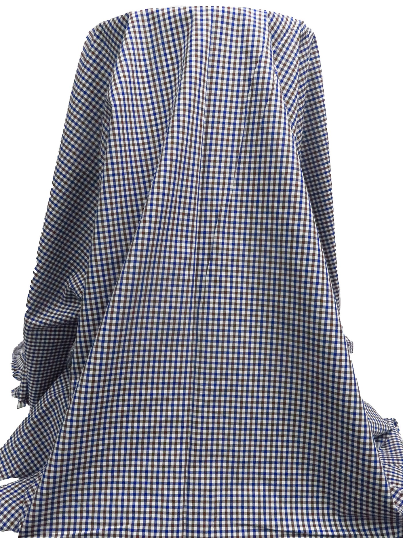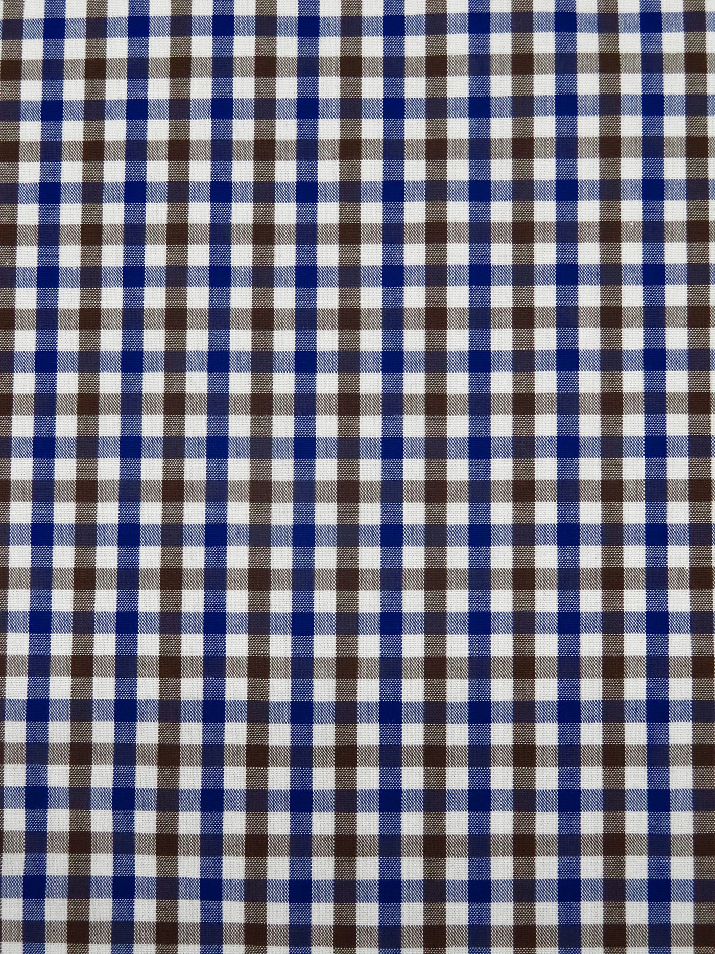White/Royal Blue/Russet Brown 100% Cotton Small Gingham Check Plaid Weave Shirting 56W
