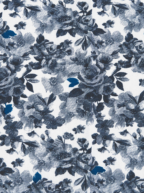 Navy Blue/White 100% Cotton Floral Print Poplin Shirting 61W
