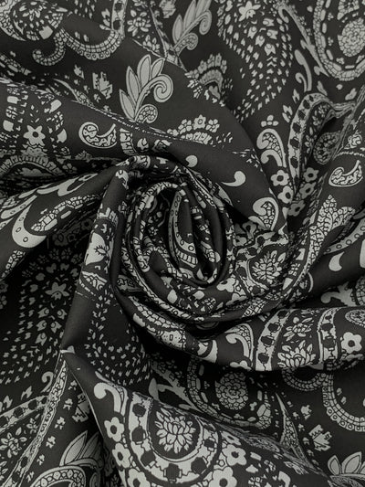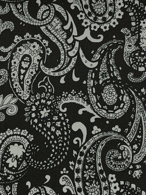 Black/Castle Gray Cotton/Lycra Stylized Paisley Print Stretch Twill Bottom Weight Woven 48W
