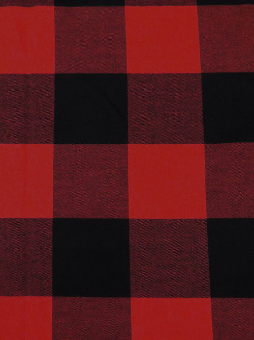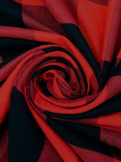 Black/Firebrick 100% Cotton Plaid Weave Yarn-Dyed Flannel Shirting - NY Designer - 58W
