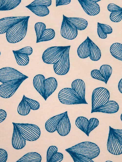 Champagne Pink/Dark Cetacean Blue 100% Cotton Hearts Print Jersey Knit 56W