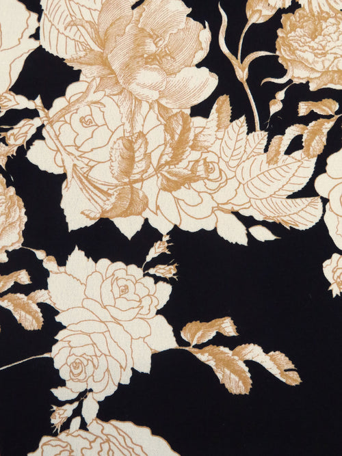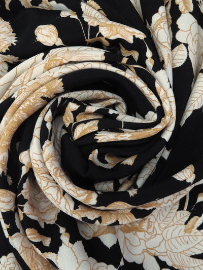 Camel/Off-White/Black 100% Rayon Drawn Floral Print Crepe Challis - NY Designer - 56W