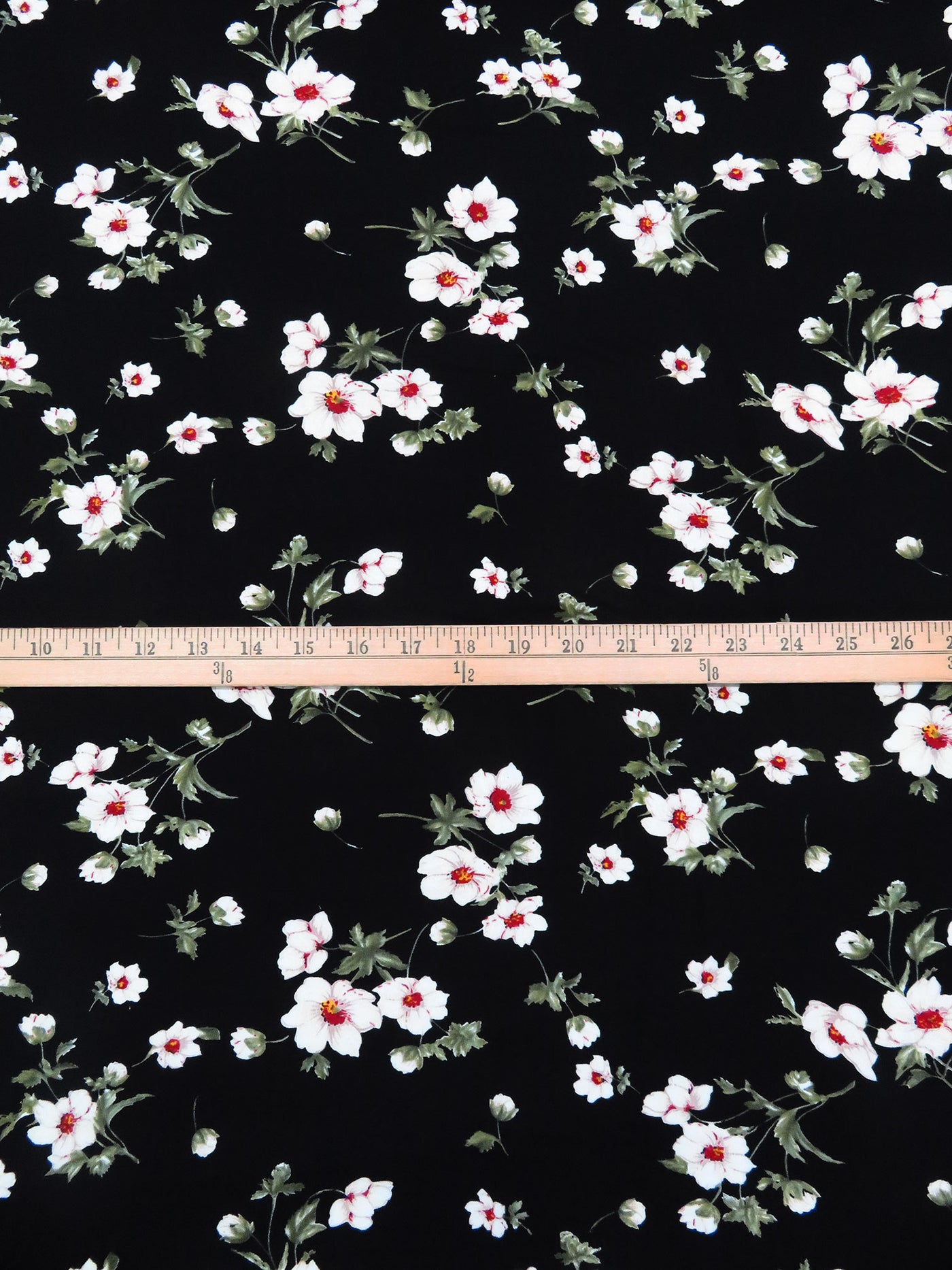 Black/Moss Green/White/Multi 100% Rayon Floral Stems Print Challis 44W
