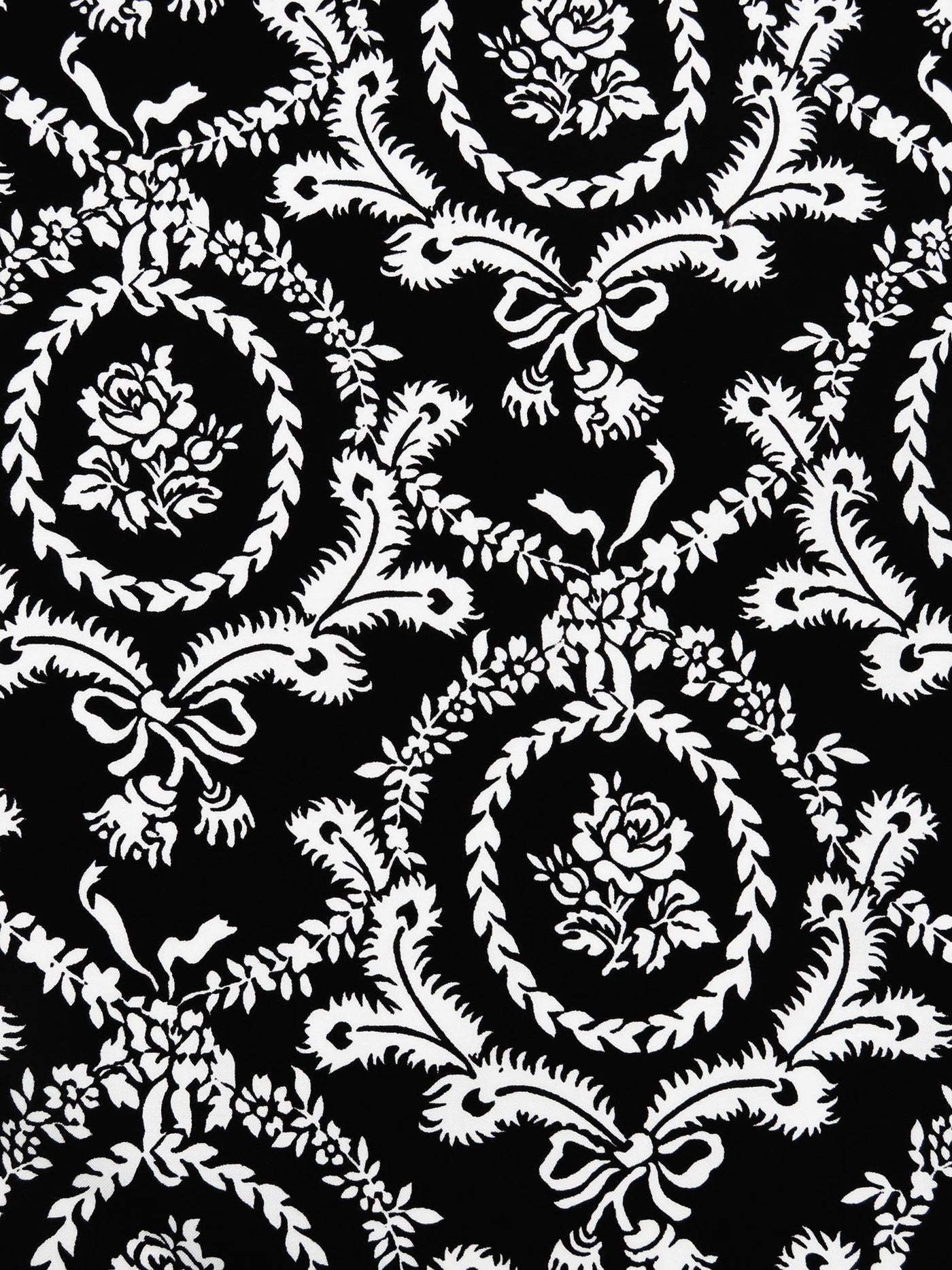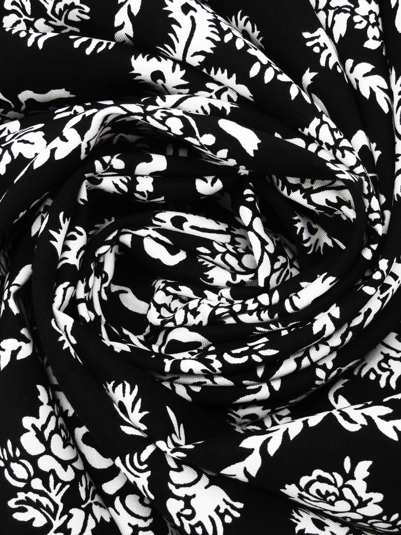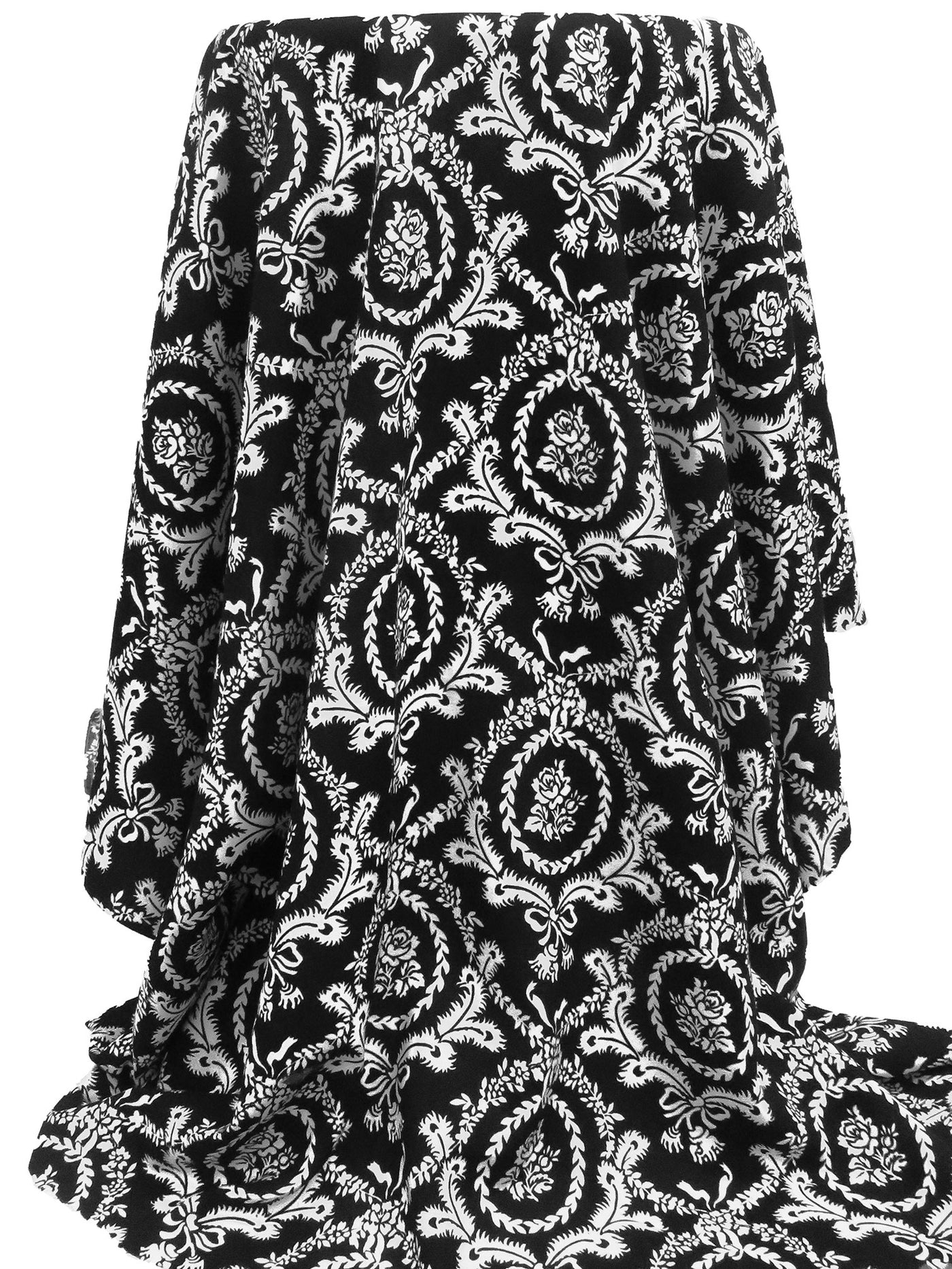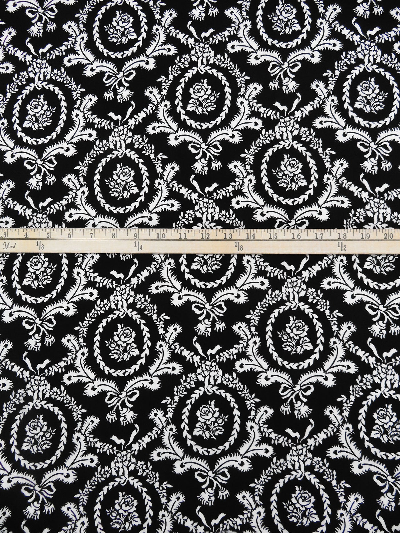 Black/White 100% Rayon Floral Framed Damask Print Challis 43W